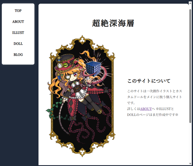 サイト名が「超絶深海層」なので、最初は真っ黒なサイトにしよう!と思ったのですが、真っ黒って画面に自分の顔が映ってイヤなので結局やめました。